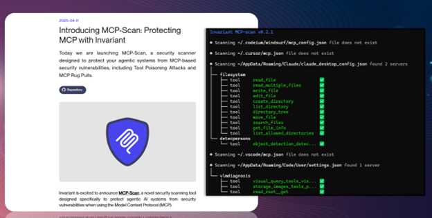 One such tool is MCP-Scan, which analyzes installed MCP Servers on the client and generates a report of potential risks or insecure configurations.